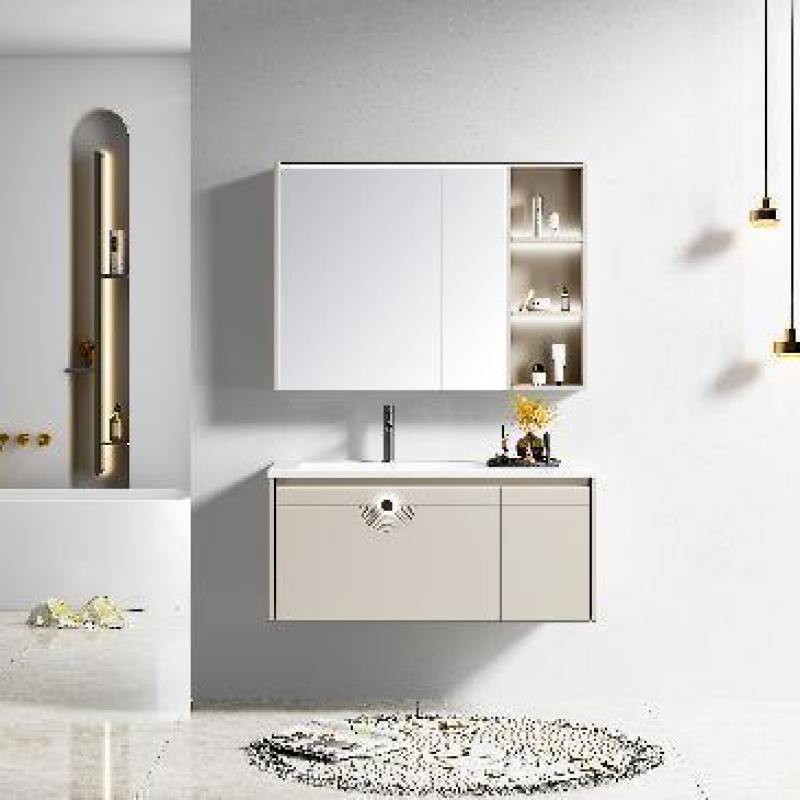 登录查看价格【实木浴室柜】HY01系列 实木浴室柜智能镜柜岩板左盆(无背板设计款) -